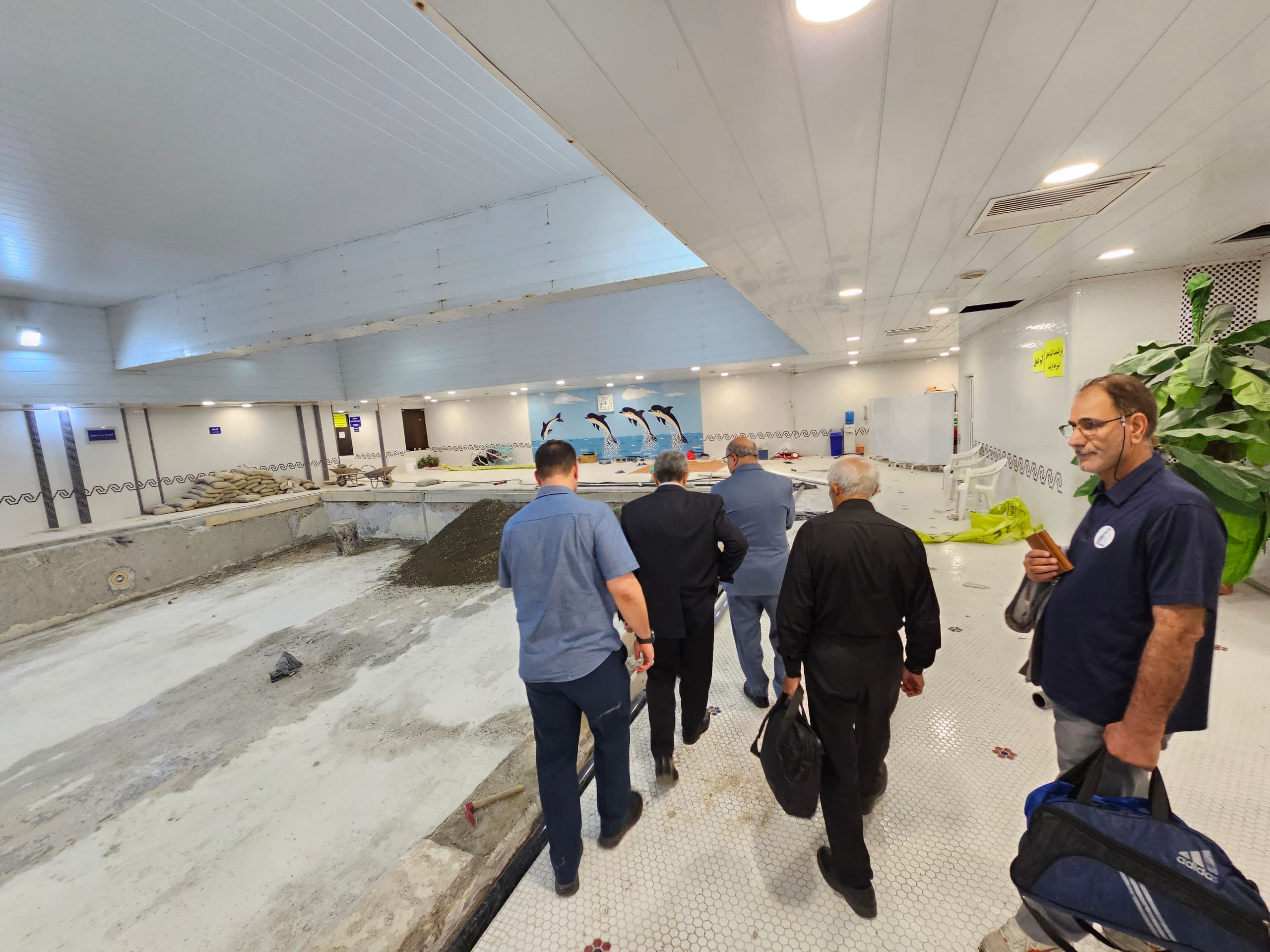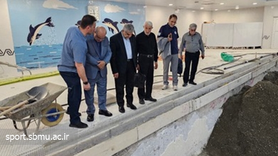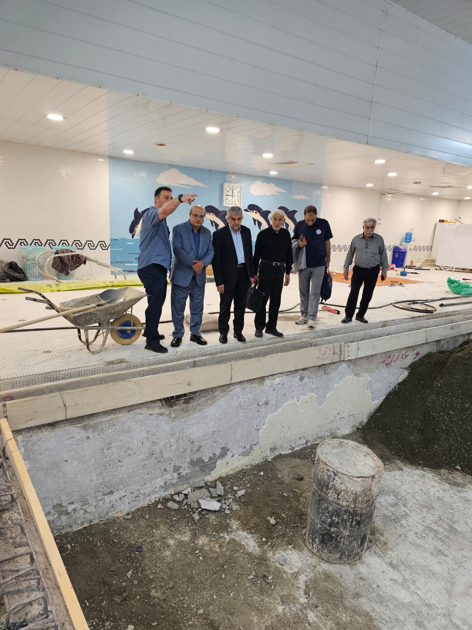 بازدید رئیس دانشگاه و معاون توسعه مدیریت و منابع دانشگاه از روند بازسازی استخر شهید احدی