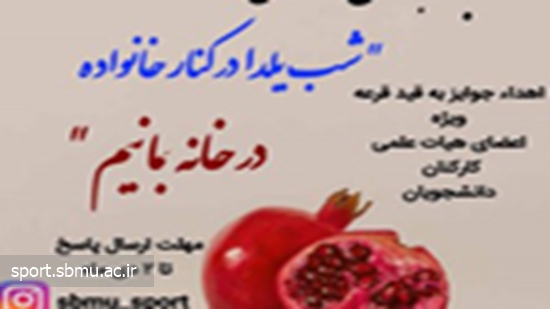 مدیریت تربیت‌بدنی دانشگاه علوم پزشکی شهید بهشتی به مناسبت شب چله، مسابقه‌ی ‏‏«حل جدول ورزشی» را ویژه‌ی‏ خانواده‌ی بزرگ بهشتی برگزار می‌کند. ‏